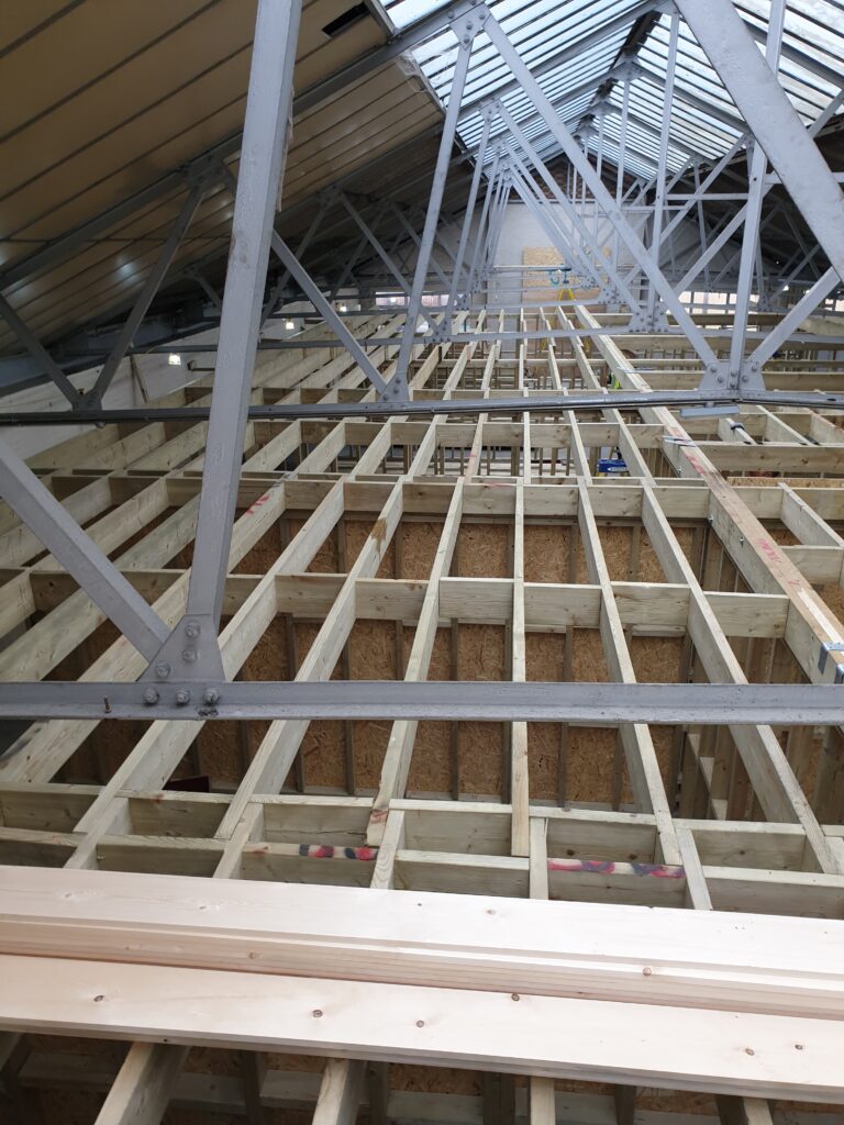 This type of carpentry begins at the very start of the construction site. It includes structural work such as partition walls, floor and mezzanine joists, staircase installation, roof joists, and more.